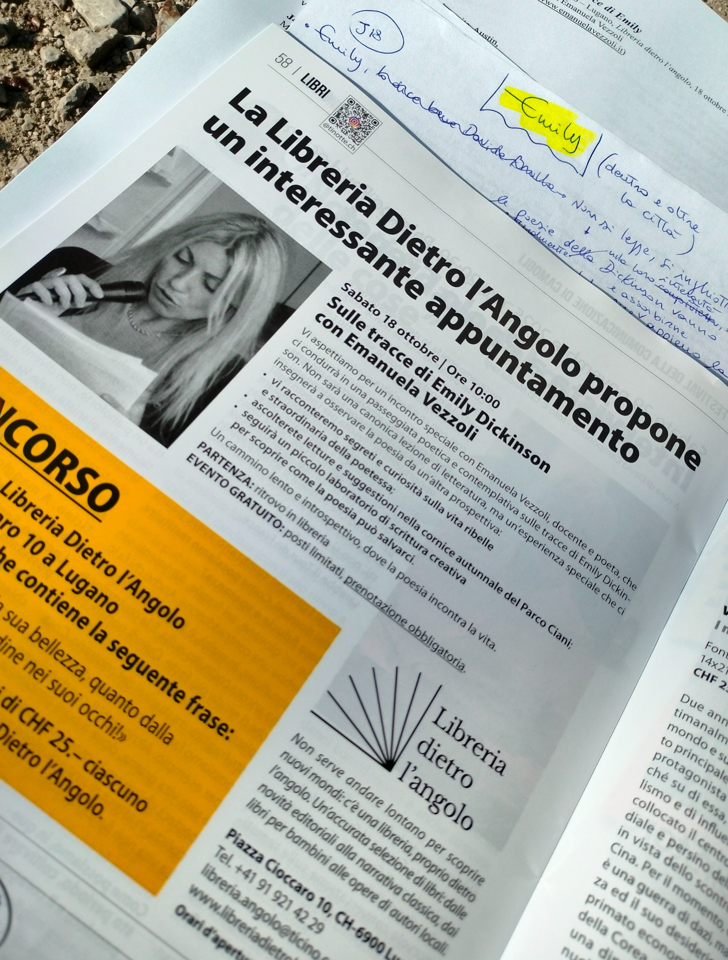 * Sabato 18/10, ore 10: SULLE TRACCE DI EMILY DICKINSON, tra la Libreria dietro l'angolo e il Parco Ciani, Lugano centro, Svizzera